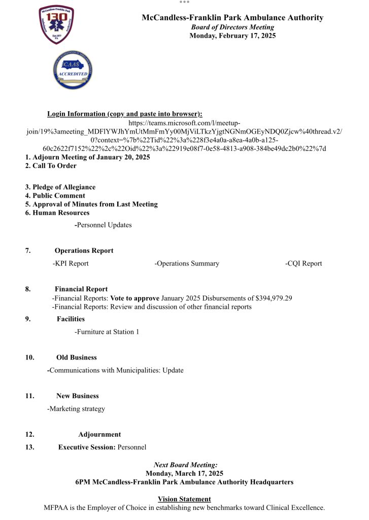 Board Meeting Agenda 2/17/25